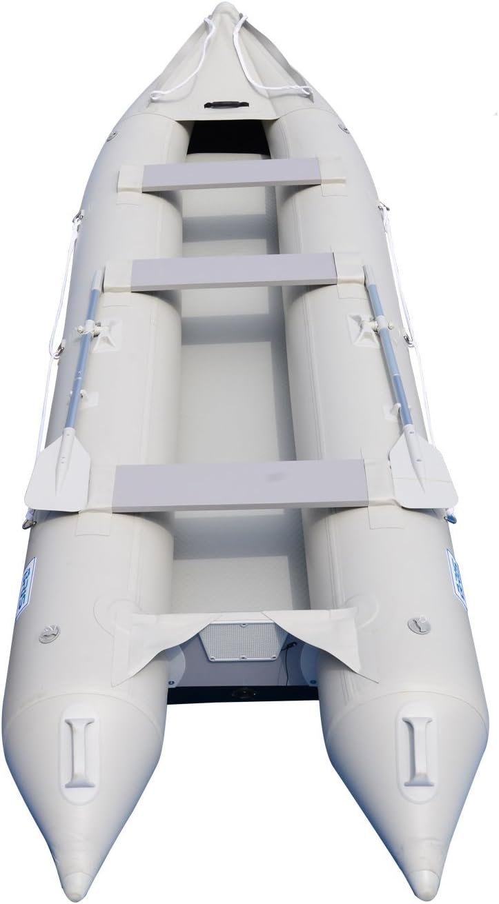 • Complete Accessory Package: Comes with three marine plywood bench seats, two aluminum oars, a foot pump, repair kit, and a heavy-duty carry bag for easy transport and storage.