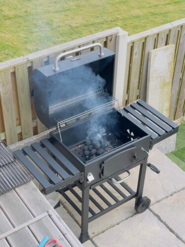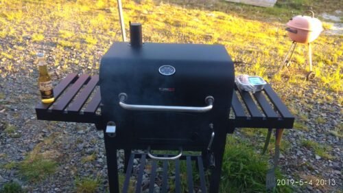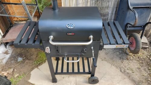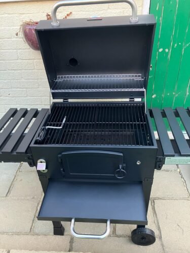 CosmoGrill Outdoor XL Charcoal Smoker BBQ Grill – Adjustable Charcoal Pan, Built-in Thermometer, 2 Side Tables, Chimney & Wheels – Portable Garden Barbecue Smoker photo review