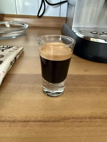 • Ziel ist es, dass der Espresso 25 Sekunden durchläuft, eine stabile Crema hat und nicht bitter schmeckt. (Und die 25 Sekunden haben nichts mit der Wassermenge zu tun - die bleibt immer gleich. Die Temperatur steht bei uns auf „mittel“.)