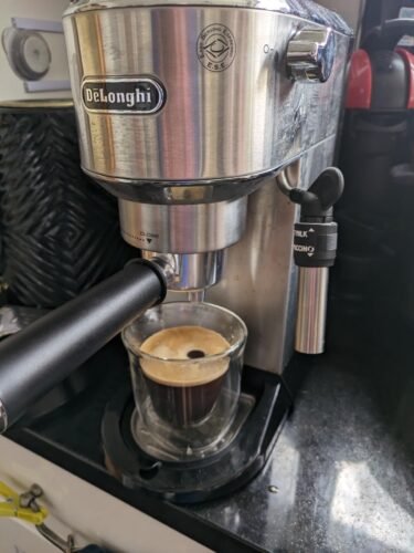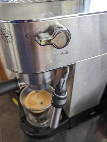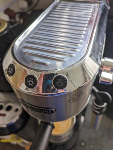 1. Ho prima deciso la lunghezza del caffè nella tazza, anche semplicemente erogando solo acqua perché l'impostazione di default della De Longhi risultava di 0,75 secondi troppo lunga. Una volta memorizzata la lunghezza del caffè si per una che per due tazze sono passato alla fase successiva.