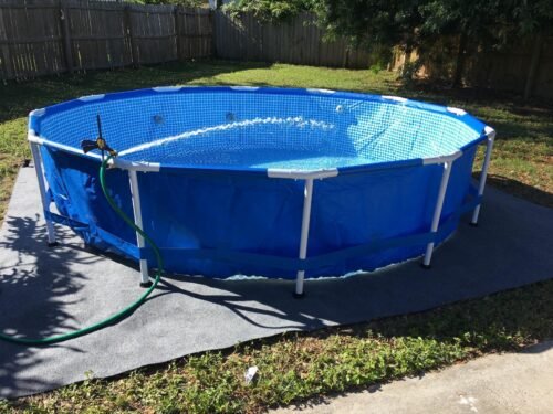It took my some time to set this pool up as I did it by myself. I raked all of the rocks out of my way, but still had a few stuck underneath that I can feel as I swim around. Thankfully, this pool is durable enough for the rocks not to puncture a hole. I purchased a tarp to put underneath for protection, but I do wish this came with its own protection underneath. My pool is slightly lopsided because my backyard itself is not totally leveled, but it's flat enough. I am aware that this could cause issues down the road from too much pressure on one side, but I think it's totally fine as the pool is temporary for me until I move again.