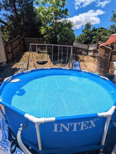 I also recommend purchasing the Intex cover to protect your water from debris and bugs. I posted tips for maintaining the cover under the Intex cover Reviews because it does lay on the water which requires cleaning it off before removing it, otherwise it dumps all the debris in the pool water.