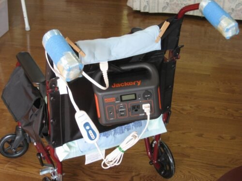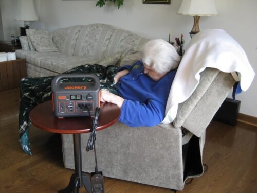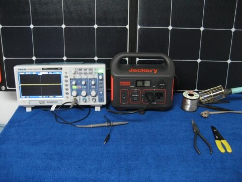 Jackery Explorer 300 Waveform; Heating Pad on Wheelchair; AA & AAA Battery Chargers; Rechargeable lights; Ham Radio Equipment; Jackery Explorer 300 with accessories; AC, DC & USB fans; Solar Charging in Morning Sun; Power lift Chair; Oscilloscope; AC, DC & USB Powered Lights