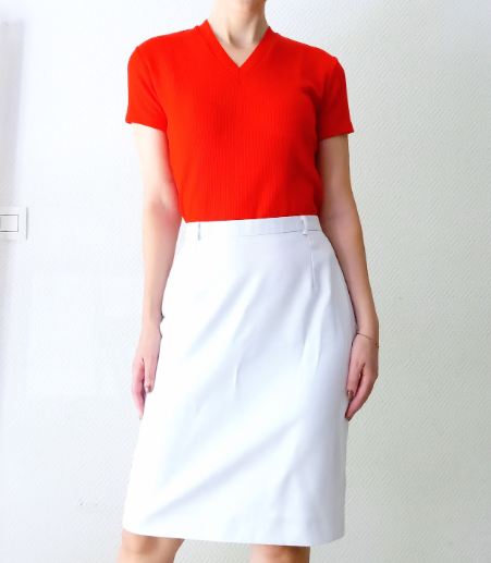 Nice vintage T-shirt in embossed red , V neck; DEADSTOCK- NEW; always labeled and in its original emabllage (labels and packaging can show differences of design on each model), made in the 60s in FRANCE by the brand BAN-LON (this piece comes from an unsold stock of clothes from a French shop in Le Creusot that closed in the 70s); red color; Nylon material; elastic material; unlined, no transparency. Since this piece has never been washed, it can carry a smell of dye or smell of new clothing, which will leave the first wash. It is advisable to wash this piece by hand the first 2 or 3 washes to let the color drip, then in a synthetic machine at 30 degrees; new condition.