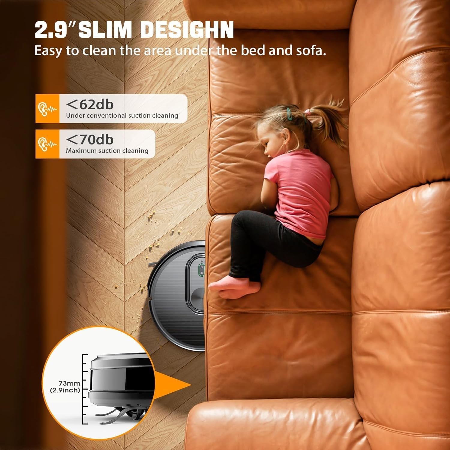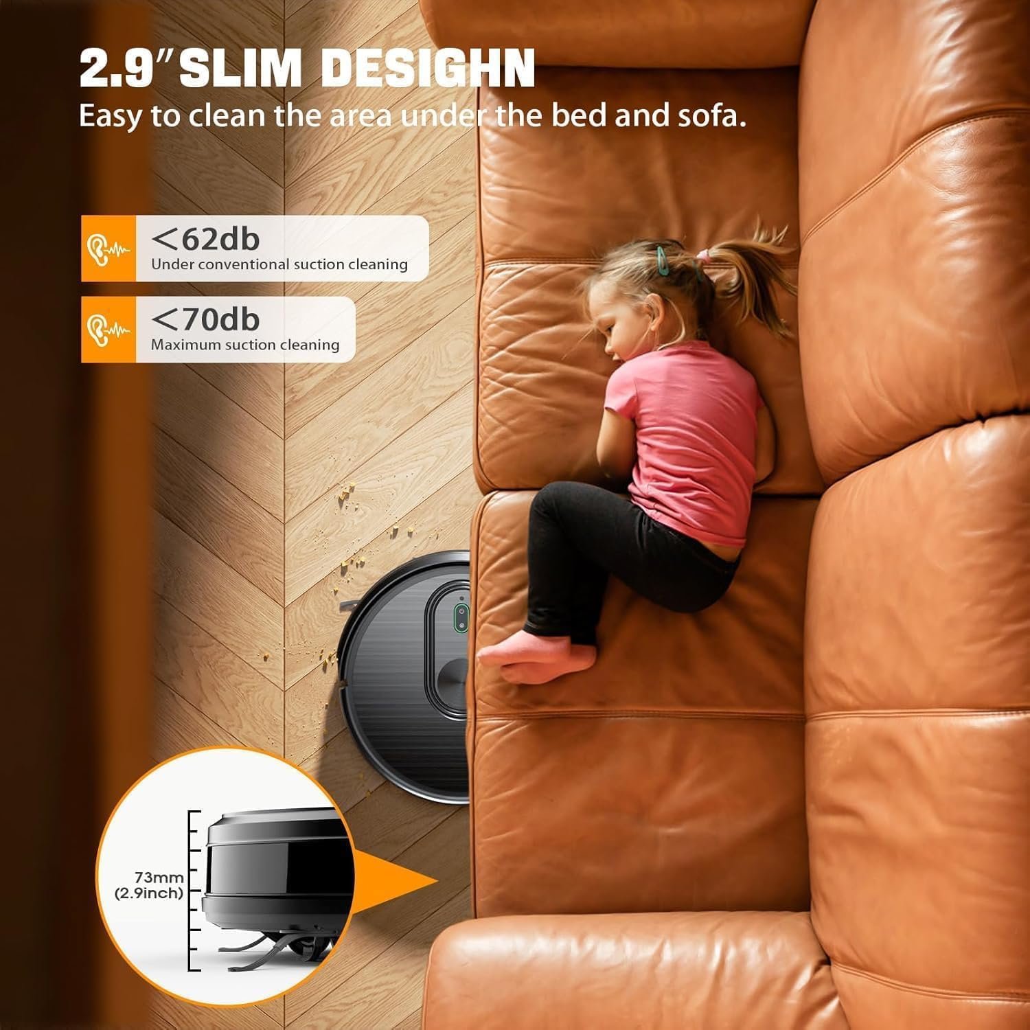 - 📏 Ultra-Thin & Obstacle Avoidance: At just 3.27” high, the slim body glides under furniture. Built-in infrared sensors detect stairs, edges, and furniture to prevent collisions or falls.
