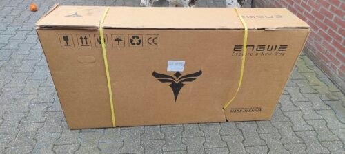 Box was damaged and taped up. missing parts for front wheel assembly. Talked to Engwe already and will be sending parts soon hopefully.