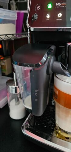 Besonders gefällt uns, dass der Milchbehälter wo die Milch aufgeschäumt wird ohne irgendwelche Schläuche oder sonst was auskommt was im Zweifel durch die Maschine läuft und dann dort Schimmelgefahr verursacht.